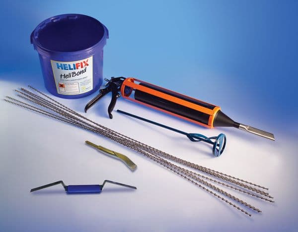 The Helifix Crack Stitching Kit contains the necessary components for the effective and reliable stitching of cracked masonry. Bonding HeliBar stainless steel bars into appropriate bed joints or cut slot stabilises the masonry and redistributes tensile loads to minimise further development of the crack.