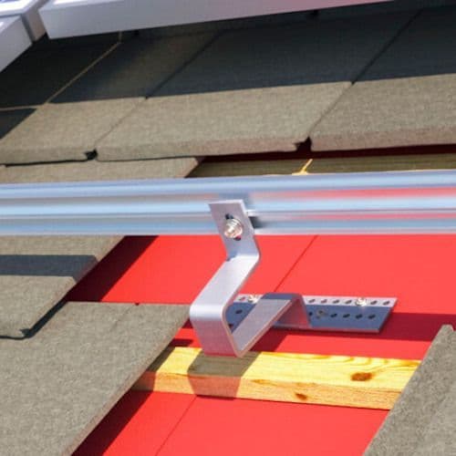The 4.42kW Plug In Solar Kit comes with a simple to install roof mounting kit to allow you to fix to a Garage, shed, house, stable or any other outbuilding with a tiled or slate roof. These are warrantied for 10 years. Please let us know the type of Tile/Slate you have on your roof at the time of placing an order